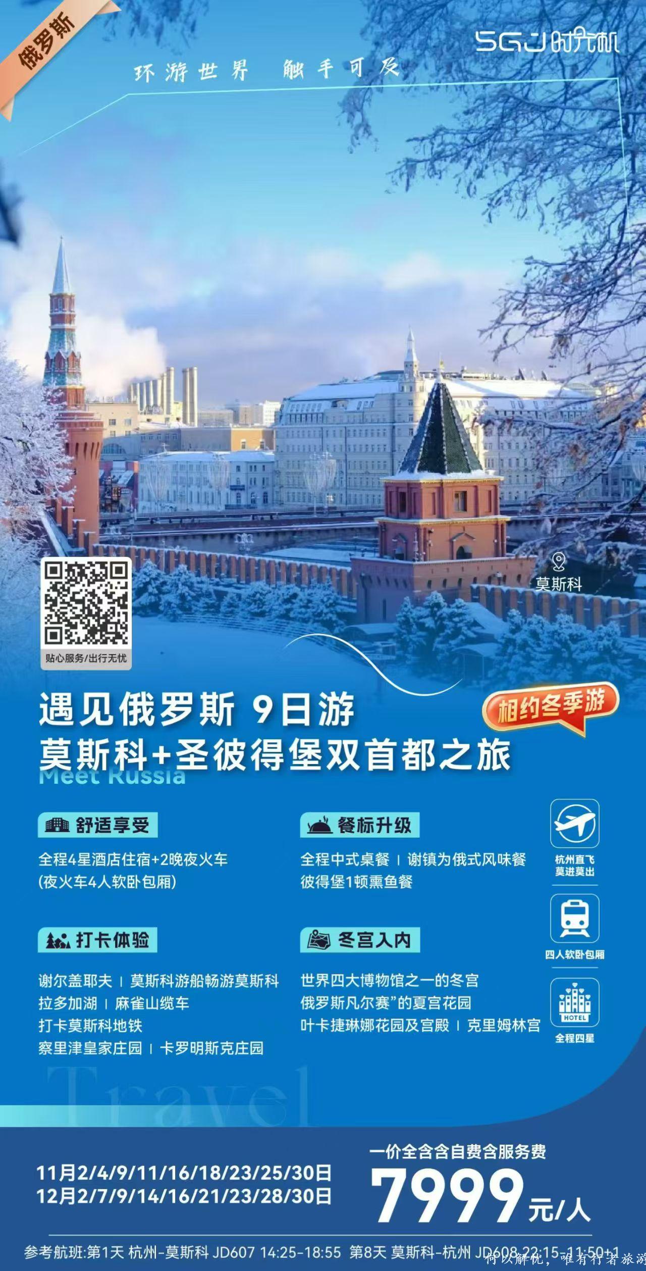 ??杭州【俄羅斯】一價全含????11-12月遇見俄羅斯9日游:7999