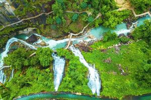 沿著溪谷棧道一路登高震落清晨凝結的露珠